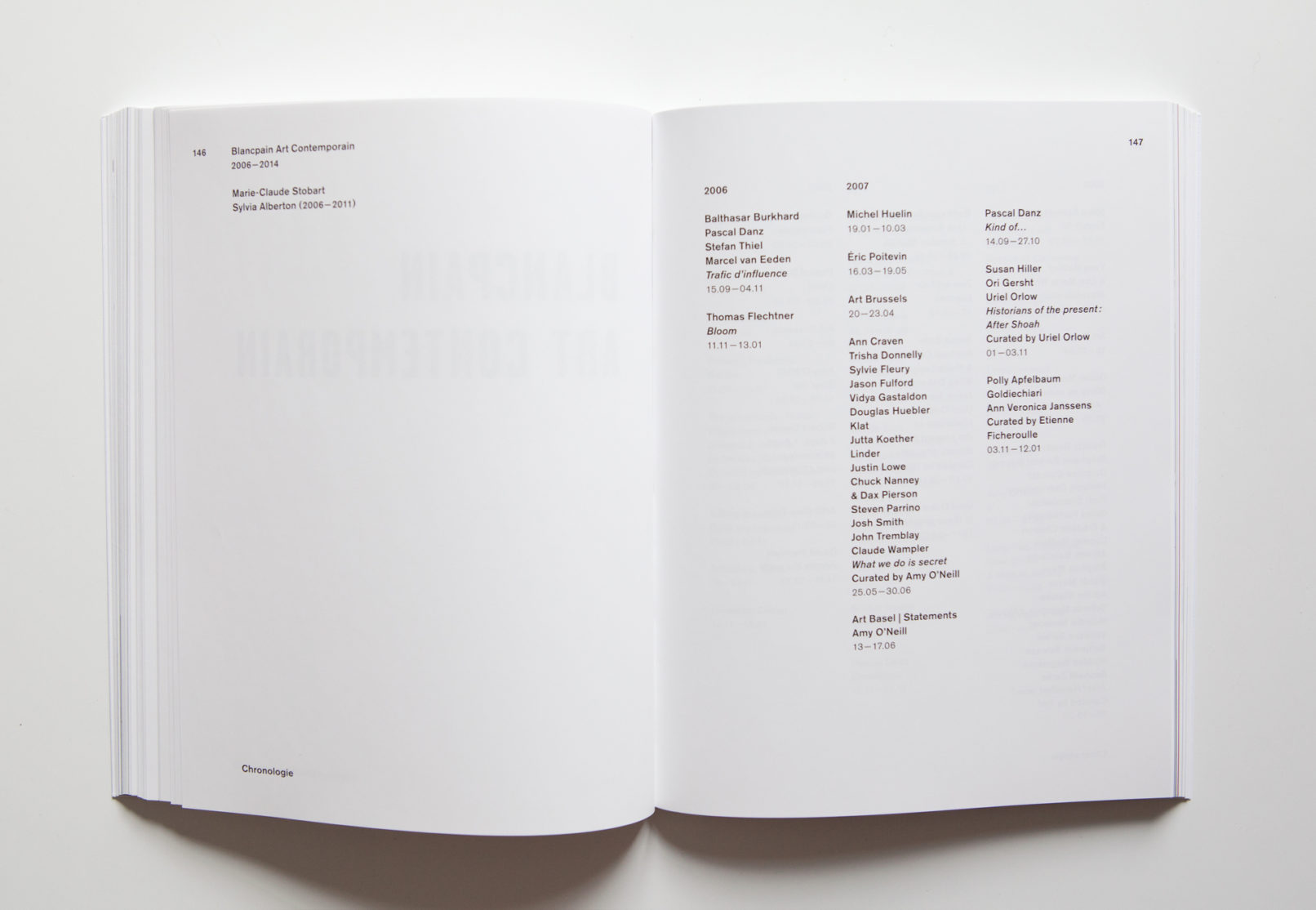 Archiving, designing, and completing a publication that anthologises 25 years of the Blancpain Contemporary art gallery in collaboration with Marie-Claude Stobart, former director of the gallery.